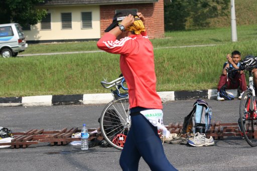 The heat that morning was reminds me of the run leg at this year’s PD Triathlon.. BURNING HOT ! Nevertheless, I enjoyed the race very much as it was the last leg of the series. So, just enjoy it lah ! Here are a few pics for starters.. you could see I got myself all covered up..so no worries of ugly tan lines !!! heheh.. to all winners, congratulations !! Keep youself updated with the photos at muds2008.blogspot.com