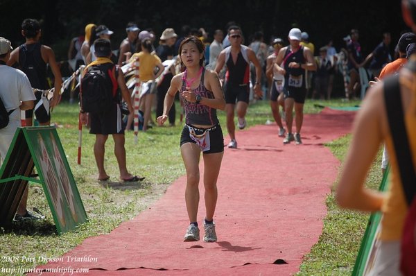 Just focus on the course, the race, myself. Keep up a cheery mood, having the energy to shout a Hi! to a friend during the bike course and  you’ll find the run course pretty relaxing. A quick transition would help too.. ! Don’t waste too much time at transition!