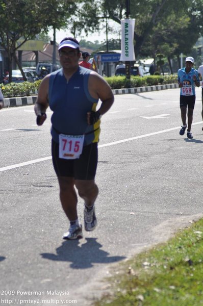 Radka Vodickova of Czech Republic (3:08:55) (Women Elite)Against the odds. Proving that's nothing odd. And that normal IS subjective. Here, Rafiq Khan of Malaysia (2:34:55) strides to perfection. Check out the slimmer and 'fitter' guy behind him ! Yeah, Rafiq overtook the elites alright. (coz he took part in sprint la). but still, he ranked #67 out of 109 guys in the Men Sprint category ! That's like 42 guys behind him!!! So, congrats Upiq. You ladies and guys CAN do it. Rafiq can, and so can you ! In case you didn't know, Rafiq takes part in triathlons and marathons as well !!
