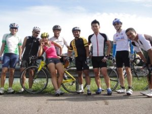 Fr left: Rahim, Fadil, myself, Acap, Fairul, Sean Chang, Ezer, Laif. Not in foto: AJ (cameraman!) An interesting ride with a few riders doing this route for their 1st time; Fairul, Ezer, Fadil. Hope you guys enjoyed it ! Congrats anyways. To those who haven't tried out this course, do check it out. U-turn point is at the Pekan Ulu Yam, where riders usually stop for some quick snack. The course is hilly. So expect both short and long hills. I suggest riders (especially the newbies), the course is doable if you've got the guts, but do try out the hills at Putrajaya first (I mean a few times) plus that short killer hill behind PICC Before you attempt an enjoyable cruise along the Ulu Yam course. 🙂