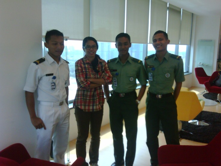 Ok, back to Bolehland. My interview with Powerbar at Nestle’s swanky new office went well. Met Chan and his tri-cadet mates ๐Ÿ™‚ Smiley, Syazwan, Amirul and Farhan. Nice to meet you guys ! I believe they’re all the board members of the UPNM Tri Club. They all look oh so smart in their uniforms. Hihi. Lucky thing I didn’t have to turn up with my no.3 uniform. But what I did after lunch with OP Jim was look for a nice blouse coz d light green old Zara shirt I had on was oh-so-tak-sesuaiii ..anyways..