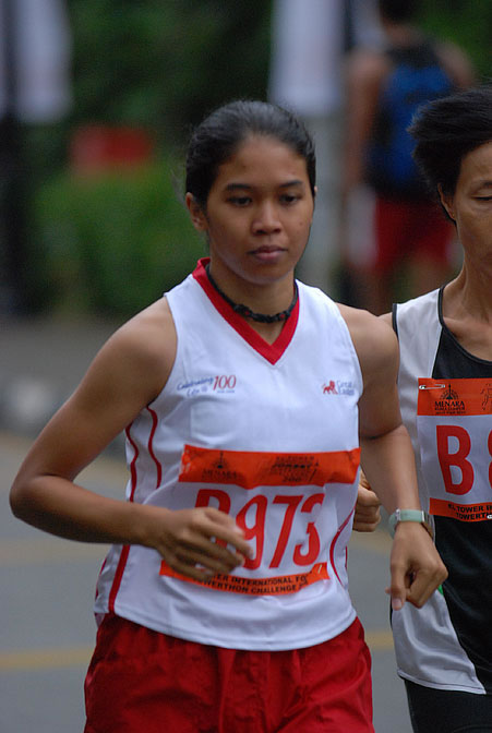 • Strategies : steps? i took 1 step at a time.. the last 3/5th of the climb, if i still have some energy left, i would do 2 steps. you will be surprised by how many people you will take over. including those brothers that looked more muscular and more Fitness First than you.. *muahahah*.. yeah, my strategy worked in my maiden towerthon.. i over took  3-4 national athletes (lady athletes la) around 3/5th of the climb.. and they were like looking at me like..  ‘eh, what she’s doing here..’..? come on, i was surprised myself ! uhm, but the climb continues.. i just couldnt’t stop. not for a second