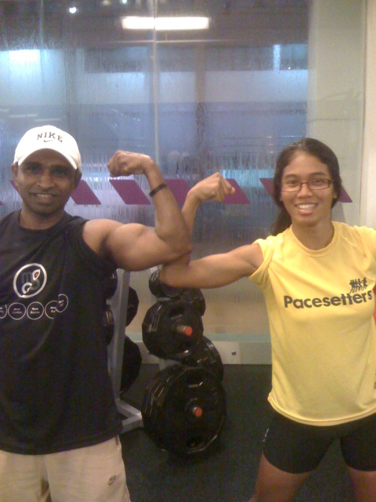 • strengthening : yes you can definitely do some free weights for your arms, or your legs. but remember, its a towerthon race, not a Mr Universe competition.. we do not want bulky meats.But we need lean, mean AND strong calves (betis), quads (paha), bicep and triceps (your arms). How do you achieve this? Here’s a hint ; medium to light-medium weight, fast and more reps. e.g. 3 sets of 10-12 for each group muscle that you’re working on. again, dont over do it. and stretch also after you workout your muscles