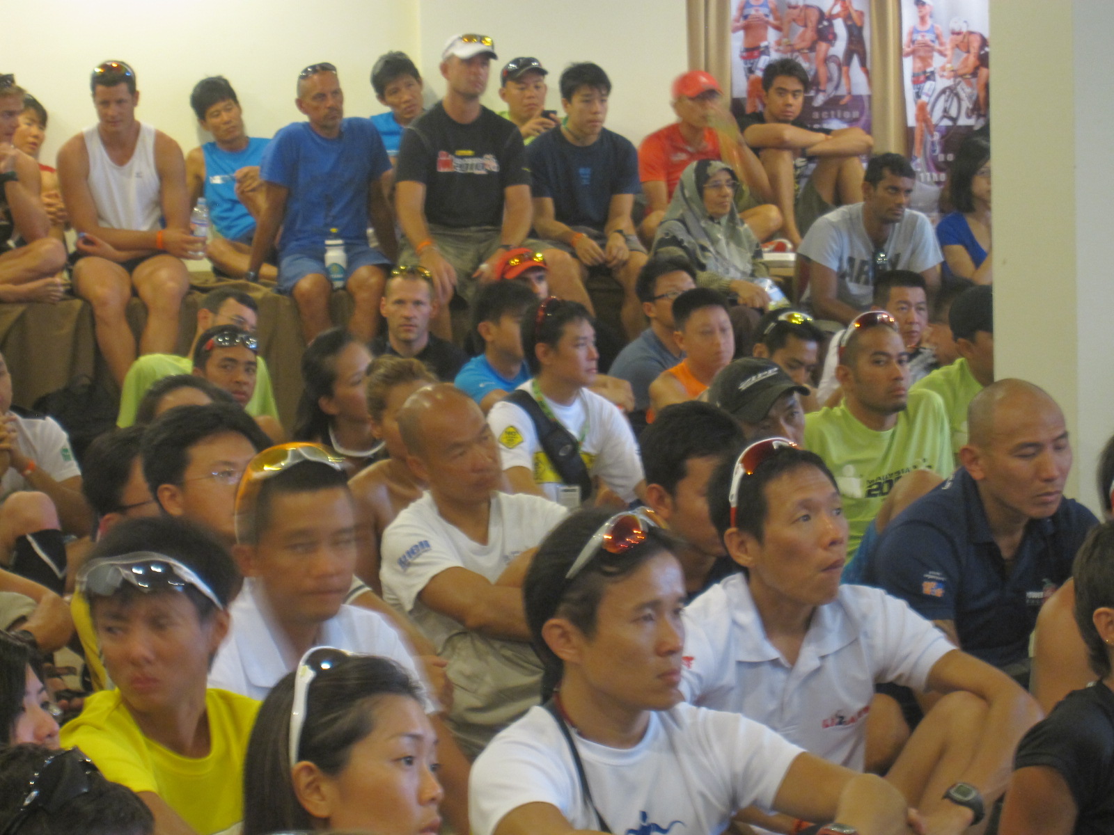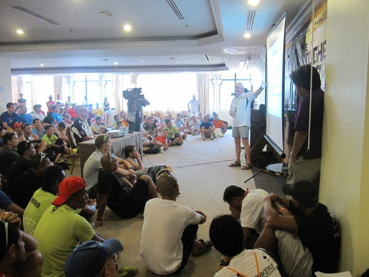 Somebody pointed out in my blog before that the official Ironman Langkawi website is rarely updated, if any. The tentative venue for race briefing is at the Langkasuka Hotel, the same place like last year. Went there no one. Got the info from Arif and Kam (both doing Ironman) that it is at the Seaview Hotel. Anyways, just made it on time to listen to the race rules and some other important things that need to be relayed to the participants. The hall was full. And everyone were seated nicely on the carpeted floor. Saw Hafiz Wong Abdullah, and quite a number of friends who are either repeating Langkawi or here for their first Ironman.