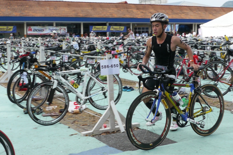 Chan Jun Shen heading out of T1. I caught him smiling on his way out *which is good* 🙂 Go Chan go !! Chan is going for his 3rd Ironman title! Apparently the youngest Malaysian to do that. He was recently selected to be part of the Powerbar Team Excel along side Hafiz Wong, Heidilee Mohammad, Rahman and myself.
