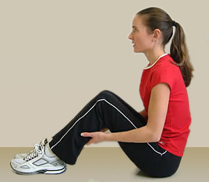 1.Sit on the floor and extend your legs in front of your body. 2.Bend your knees and place your feet together, side by side, flat on the floor. 3. Place your hands on your calves (see photo A)