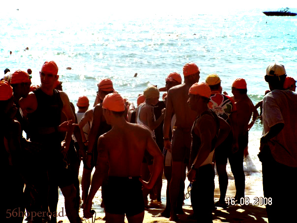Swim start. Plenty to catch up with fellow friends. Yakkity yak. 1/2 IM what? 😛