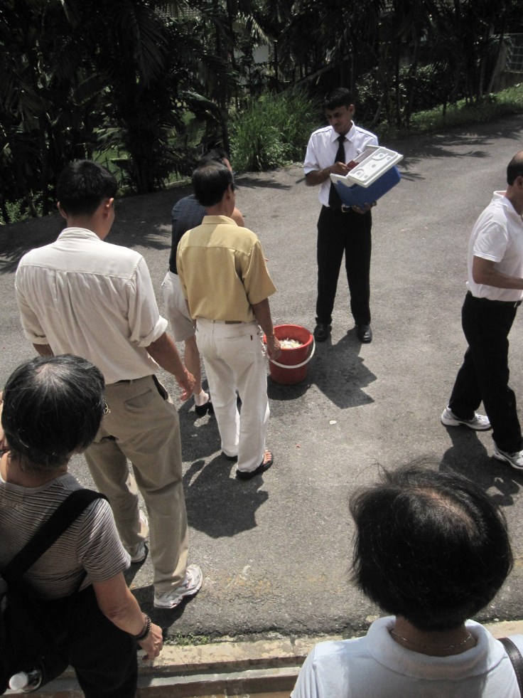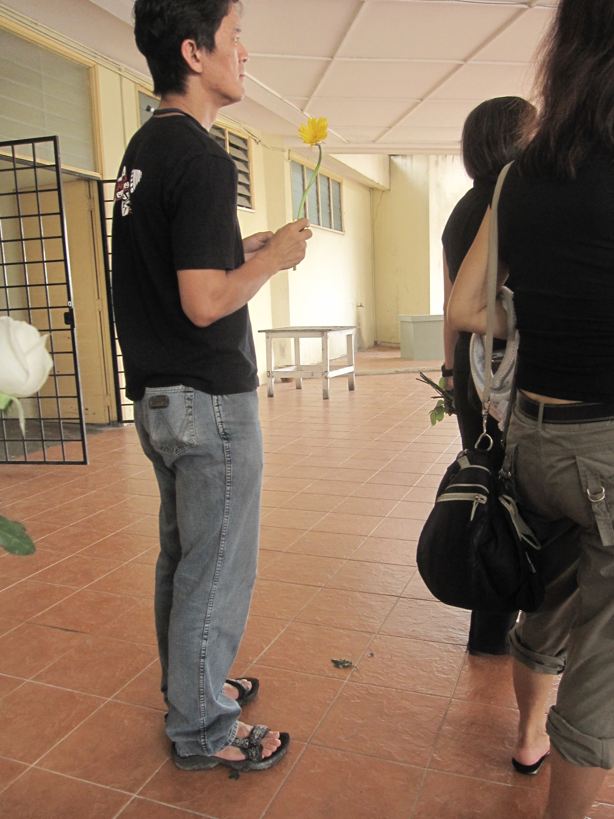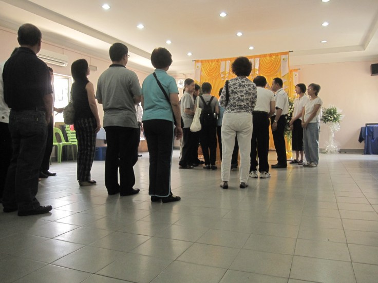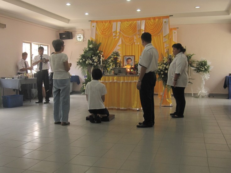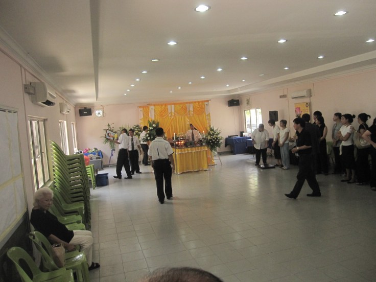 Tey and the flower again 🙂 The monks were chanting some prayers during which the guests were given a flower each. I got a white rose. After the prayer, we took turn to place the flowers on the coffin before it was pushed into the furnace.....