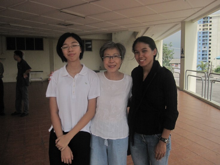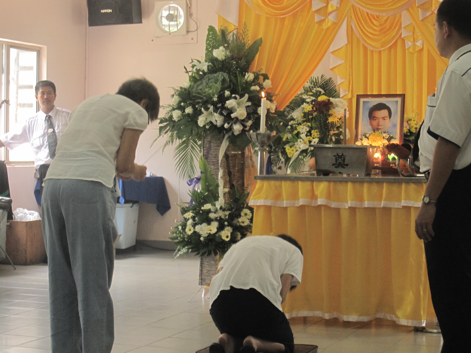 Pin Pin and Xian placing the joss stick in front of their beloved's potrait ..