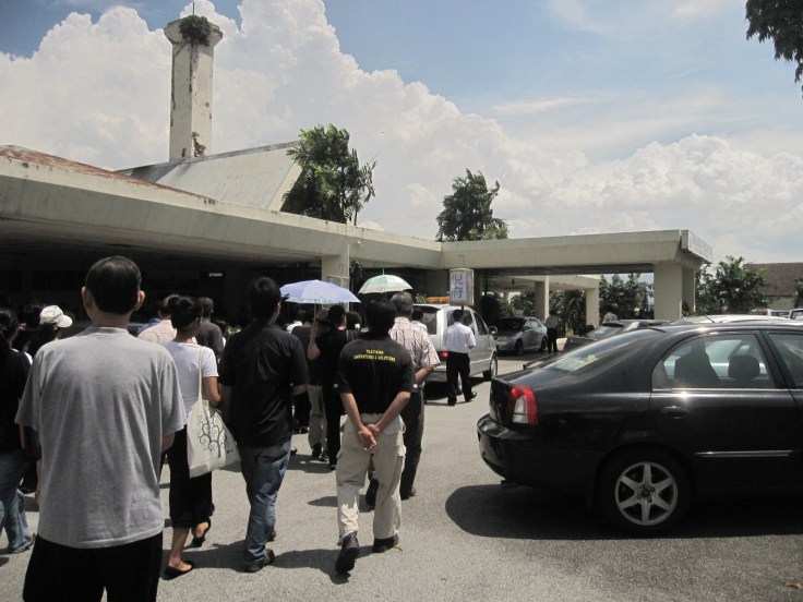 The coffin being taken out from the white Estima for the final prayer ceremony before the cremation