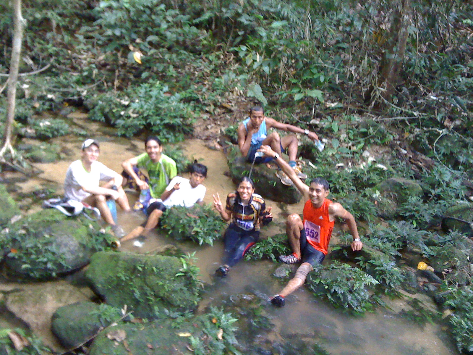 8/5 : River of bliss : those who ran with only a bottle of mineral throughout the tough varied terrain (plus the gaung, pokok duri, batu besaq mcm killer whale) did suffer... Organizer can should improve on that.. I mean on managing the water stations. Met some new friends along the way. Zulazlan (in blue vest) is also a blogger. Nice to meet you Alan (orange vest) and Ahmad (white t-shirt)