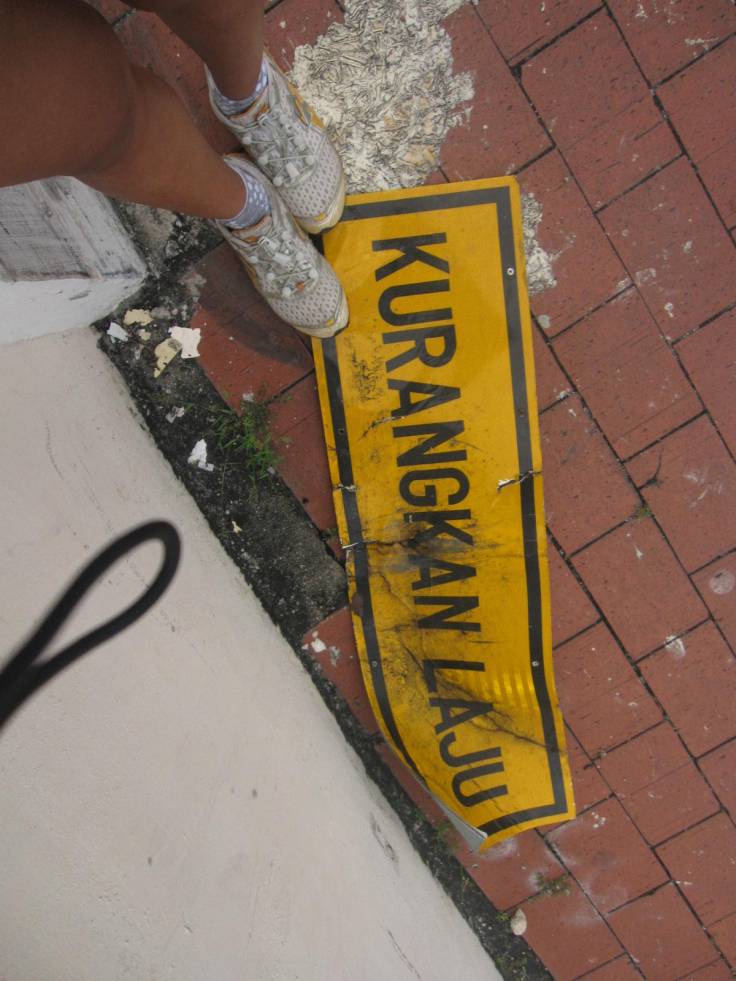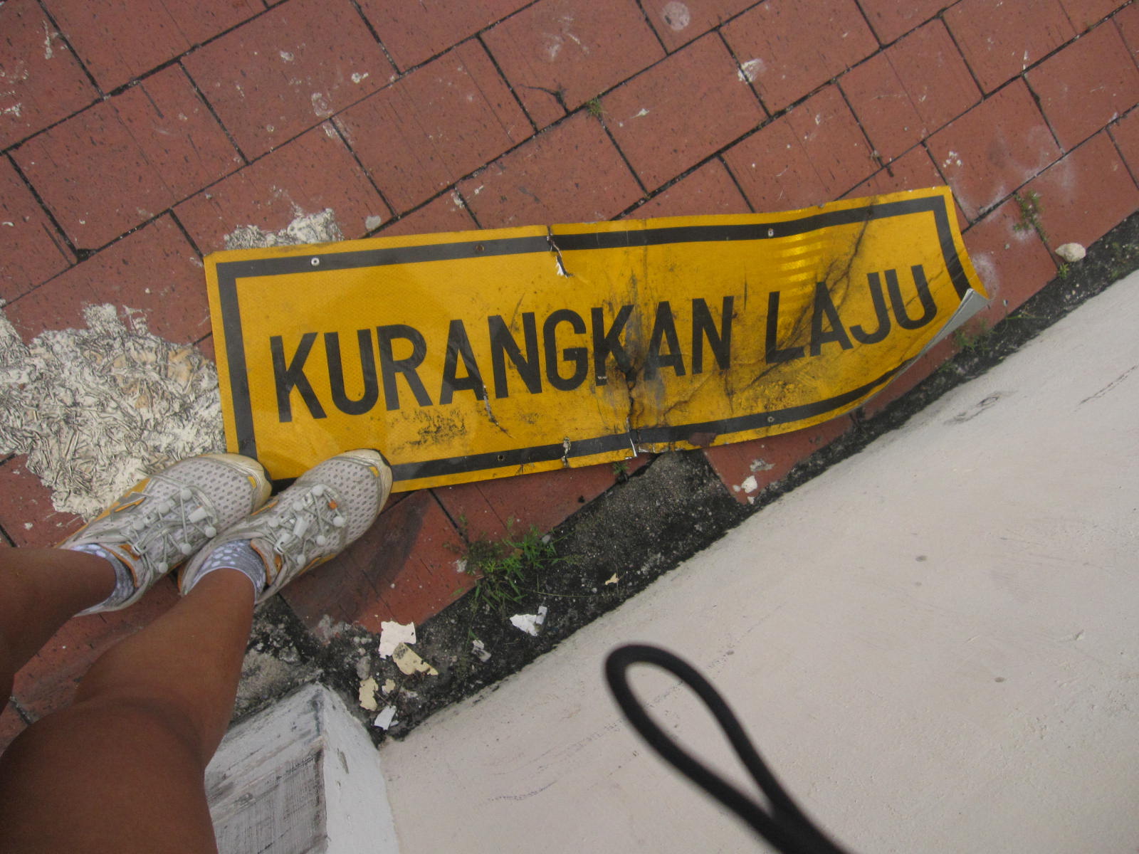 That is 'Slow Down' in Malay. πŸ™‚ Yeah, definitely need to press the 'Slow' button...but cant find it. I don't want to Pause my life either... the Stop will definitely come. Fast forward ? Not my thang.. Rewind ? Its ok.. The best and unique moments only come once. I need to hold the rein a little bit tighter and slow it down a bit... gallop....canter...now trot .... ok... better ! and will walk in a bit..! You see in the picture above what happens when you don't kurangkan laju ??!