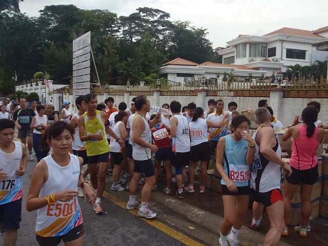 Water station before the lovely double hill. Ever since I ran the double hill years ago at 1 of the Pacesetter runs, there was no reason not to like this hill. Imagine the course being flat... your muscles tire easier..! When there are hills, there's not only uphill, but also downhills ma. 🙂 Me gulping another cup. Previously, I usually bring my own drinks for runs. Kudos to the organizers for the excellent management of the water station.