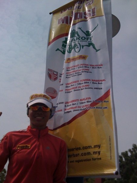So the first installment for MUDS this year took place in UPNM, the host for the final series 2 years ago. MUDS or MALAKOFF University Duathlon Series is a 3 week back to back sprint duathlon (run-bike-run) event held at 3 different universities. For 2008 Universiti Kebangsaan Malaysia (UKM), Universiti Malaya(UM) and UPNM played host. In 2009, the honour was given to Universiti Putra Malaysia (UPM), Universiti Tenaga Nasional (UNITEN) and UM. As for this year, UPNM graciously played role as the 1st host, followed by UM for the second series, and the final one will be in UPM this weekend.