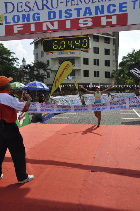 Ok, sabar..tak habis cerita lagi ni.. Razlan (Malaysia triathlon commentator greeted me at the finish announcing my name, and giving me a high five and quick hug..haha.. AND… he whispered into my ears.. ‘You should have finished sub 6 !’. I know what he meant.. I know.. but I was happy and satisfied that my performance is better than 2008, without any pain, on my knees or any cramps at all .  I will work on it Razlan, will work on it. Ni semangat nak take up swim lesson niehhhhh !!!!! watch out yek ladies.. and YES, I know that as I progress through the age group categories, it will be more difficult. because the stronger competitors are in the older age group.! kalau boleh remain 28 forever kan MACAM best. haha..(kepala otak angg..)(that’s ‘YOUR HEAD!!’ in Malay..) ..hihi..ok .ok… intermission jek tuh..