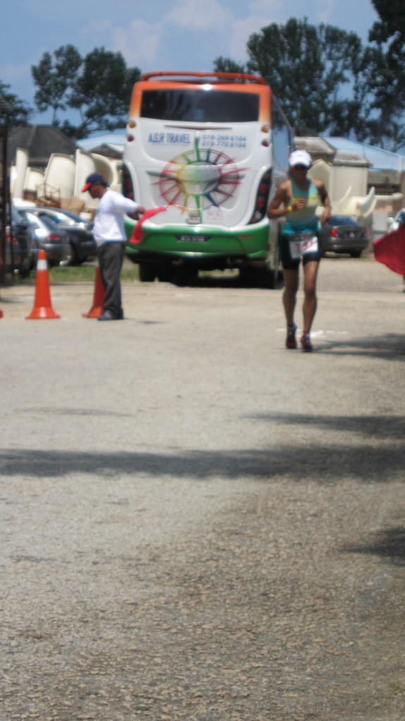 Saw Jaja, Kam (taking it easy), and Penang(from UPNM). Cheered them on. Jaja looked strong !  Salute to the triathlete (and 1/2 IM distance finisher) who did the 90km bike course on a Rock-mountain bike ! 🙂 1 of the UPNM guys suffered a puncture on one of the hills. I slowed down (on the hill!) to check if everything is alright..), and suggested that he should just ask passing participants if anyone have a tube to spare. ( i didn’t have any…)..