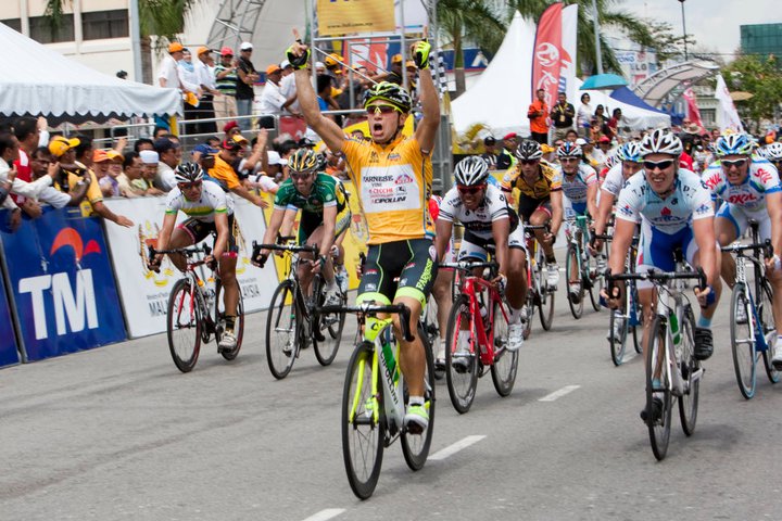 The 21 year old avoided the crashes which littered the final run-in to the line, staying upright, remaining in the right position and then finishing it off perfectly to triumph in Butterworth. Guardini, who competes with the Farnese Vini – Neri Sotttoli team, beat Boris Shpilevsky (Tabriz Petrochemical Team), Malaysian rider Anuar Manan (Terengganu ProAsia Cycling) and the rest of the peloton, fortifying his grip on the yellow jersey of race leader.
