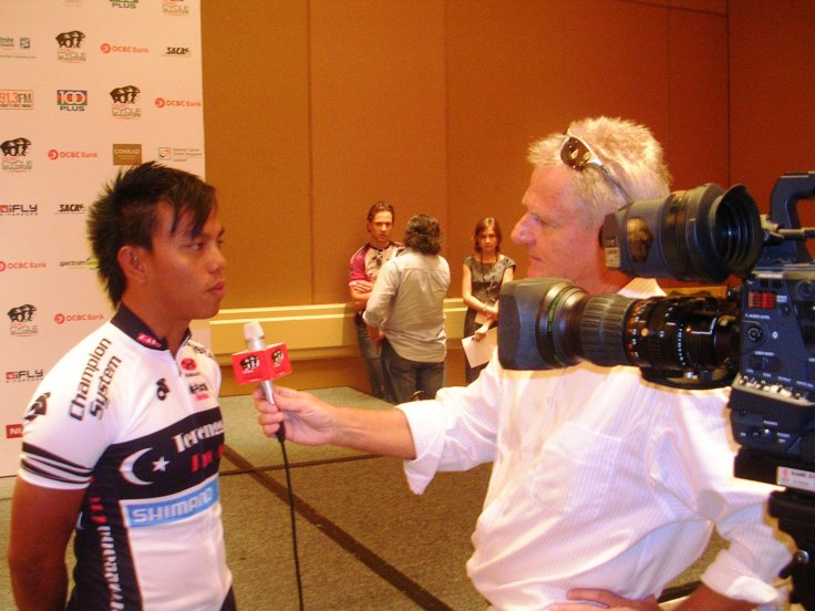 Terengganu ProAsia's Anuar Manan interviewed by the media. He so need to shed off the 'jaguh kampung' image. Malaysian cycling (road) has a long way to go. I couldn't find Anuar's name in the top 47 finisher in the pro criterium result.