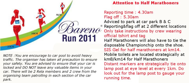 Important note for Bareno 2011 Half marathoners. Do spread the info !