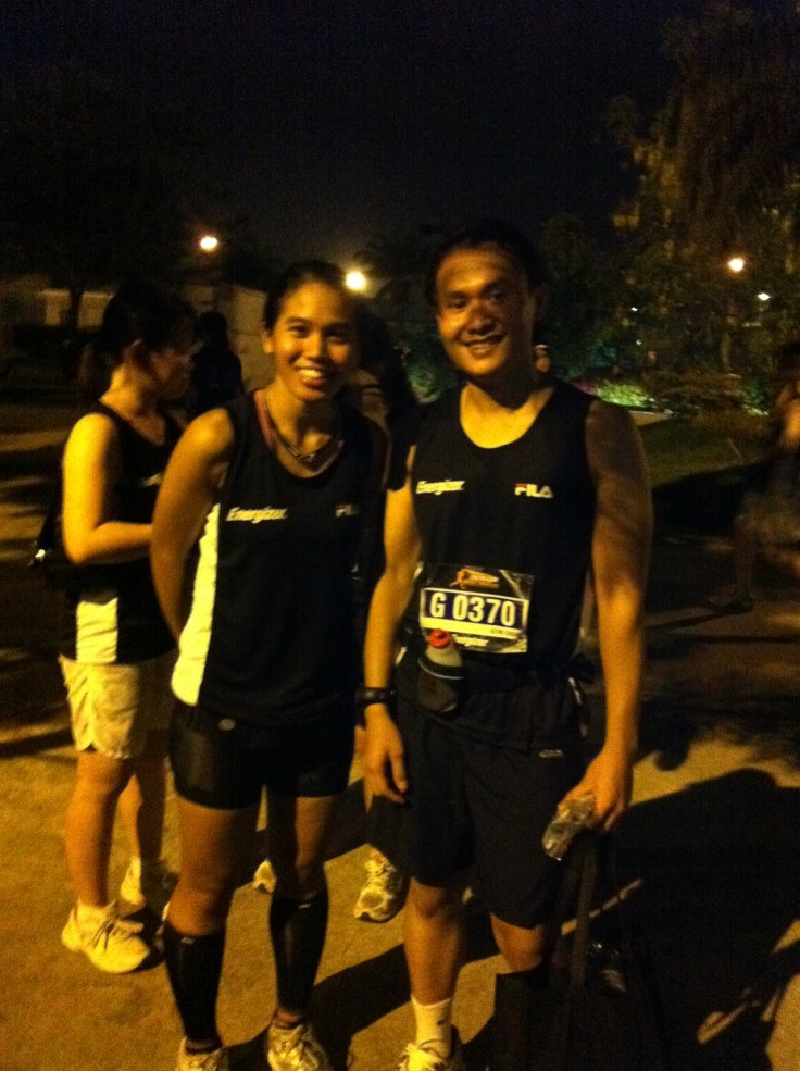 Alexandria(in maroon tee) and friend 🙂 we kept to our promise and did bump into each other just like we did during Bareno Run this year and Siemens Run last year ! Congratulations on finishing the run dear friend ! Update me when you decide to tackle your 1st 15km or 21km. 🙂 the world is waiting. hihihi.