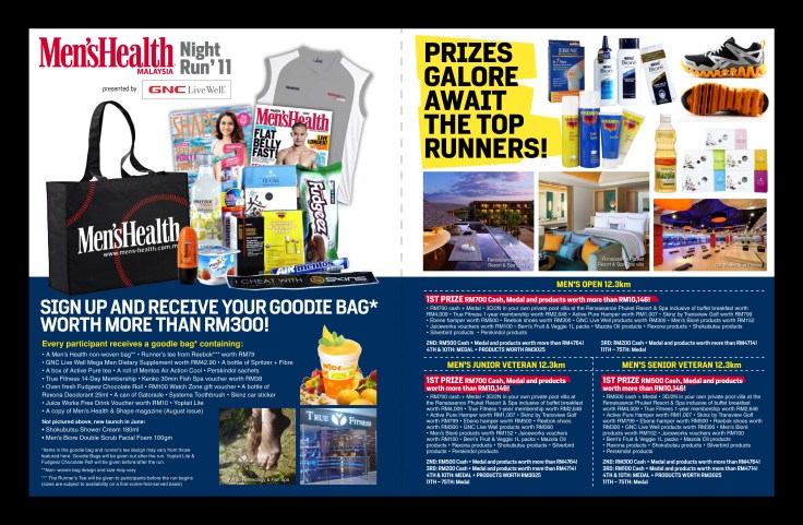 Greetings to all running kakis of Malaysia. The Shape + Men’s Health Magazine is back ! Happening on the 30th of July 2011 in Putrajaya. Registration has opened, and details are available in the posters above. Just a quick summary of the important details if you have gone through the posters :-