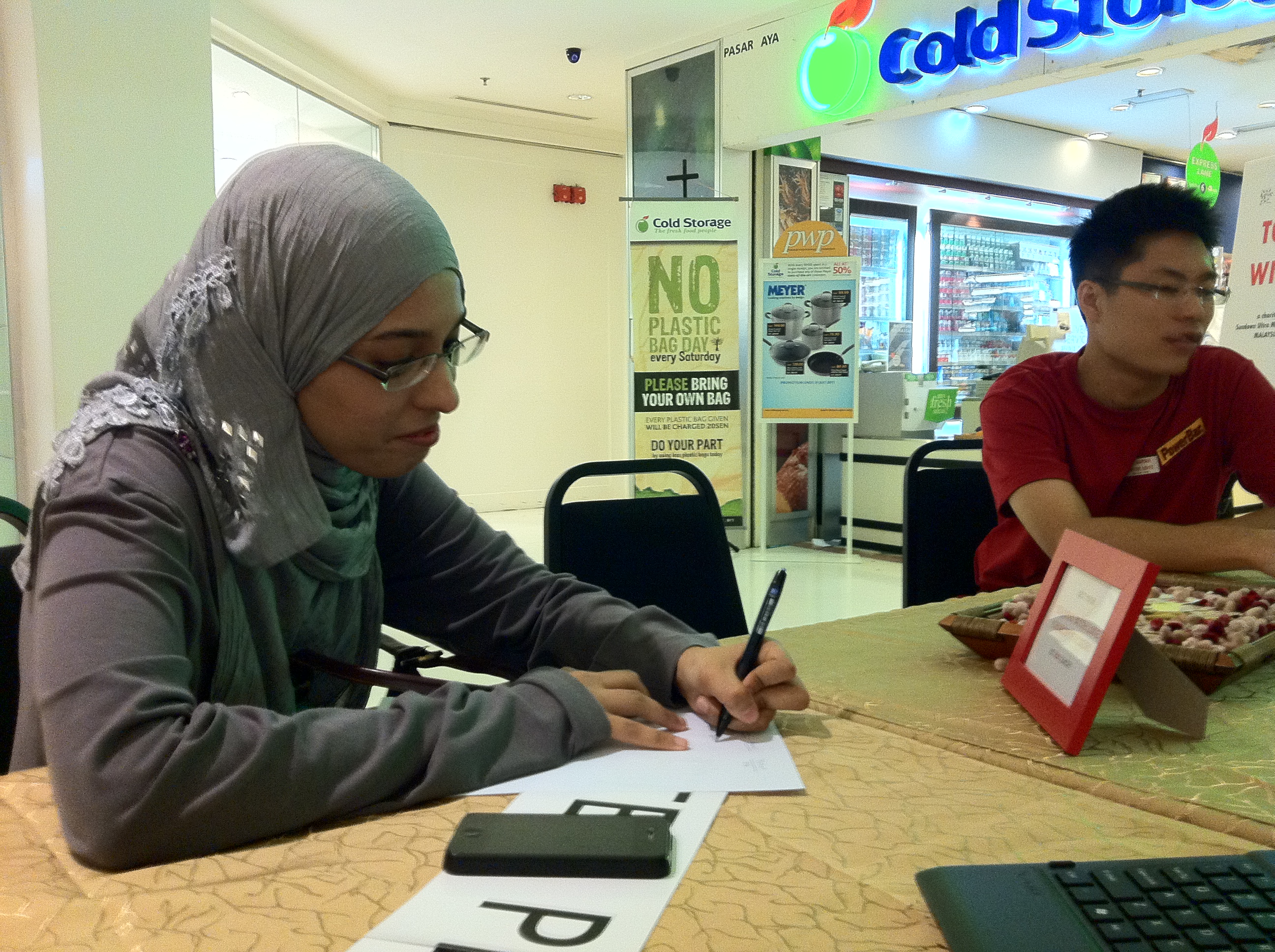 Syarifah Nafisah filling in the contribution form at our booth in BSC last Saturday ! Thank you ! 🙂