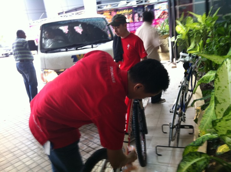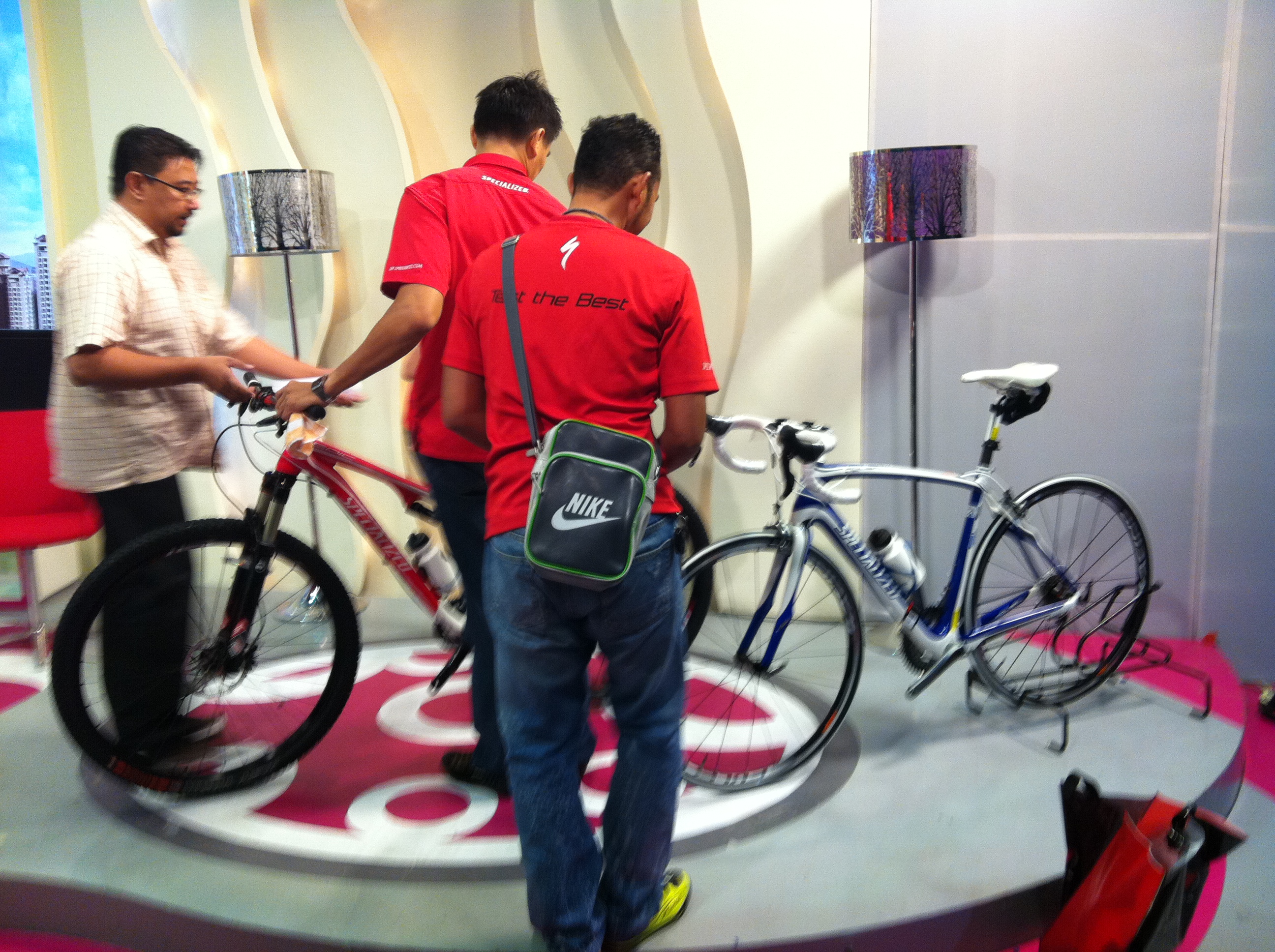 The camera rolled ..and… it was much better than what I expected ! The hostesses did a great job with describing some history and background of cycling i.e. invention of the first bike, and how cycling is very much domestic and serve as transportation in developed country such as Japan, and China [that’s their job anyways..right?]. Dari segi delegasi soalan-soalan yang ditanyakan kepada Intan, Sharil and myself, cukup seimbang dan bersesuaian terutamya untuk menarik minat para penonton di rumah samada golongan wanita atau lelaki untuk mengambil tahu lebih lanjut tentang fenomena berbasikal yang kembali di tanah air ini. Actually, the cycling trend never left us ever since the British/Japanese came to our country, or ever since the first P.Ramlee films where we see people would cycle as much as they were driving a car.