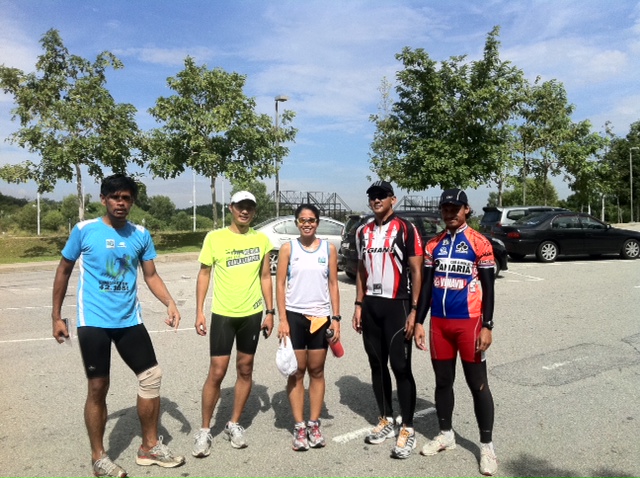 Last Saturday I rolled out for a 30km bike , 5km run brick session with Azmar, Shakhir and a few other tri-buddies. They did a 10km before the run . It was freakin’ hawttt when we started the run. My bad for not joining them for the 10km run they did before the bike (basically they did a dry-run). Later on bumped into Ezan, Zee and Fairul who were also in Putrajaya. Doing the last prep for Powerman I suppose ! As for myself, just doing what I gotta do. Trying to ‘stay out of the sun’ as much as possible as I didn’t want the tan lines on my face as I had to attend a function yesterday where I got into a little misdventure — that is trying to conceal the tan lines on my face (from the Oakleys shades) . The concealer and layers of foundation did a great job. Pheewww ! I was amazed (to myself) that I can actually make-up ! Well, at least the basic make up skills needed for a person who don’t on daily basis put any foundation or make up !