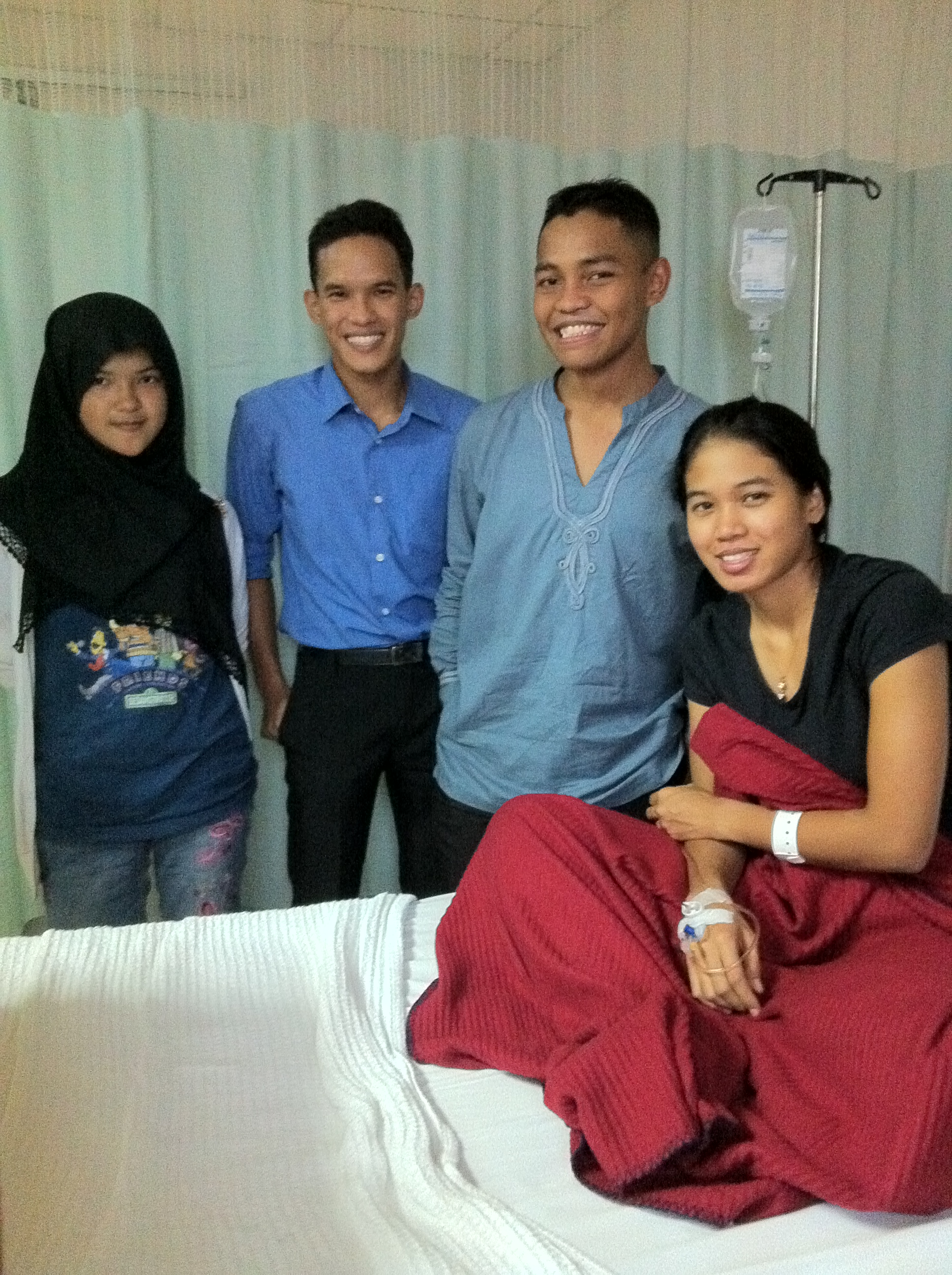 Currently resting at home since yesterday, and will be back to work tomorrow. To all my friends, who visited, called, texted and wrote well wishes for me, Thank You ! Chan Jun Shen was the first to drop by, very nice of him. Thanks Chan ! Oh ya, he brought me some food stuff as well (I only checked in with some clothings/books/my laptop and a bottle of mineral water). My family, Nora, Shah, Paán, Aiman Halim (and siblings), Farah Fazu, Syukran Terk, Najwa, Hadi and a couple more friends came. Thank you again guys !