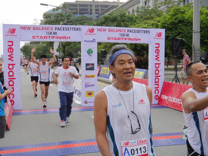 Never too late to start. Way to go Onn !!! Ignore the finishing shoot behind him. He has completed several FULL marathons (42.195km).