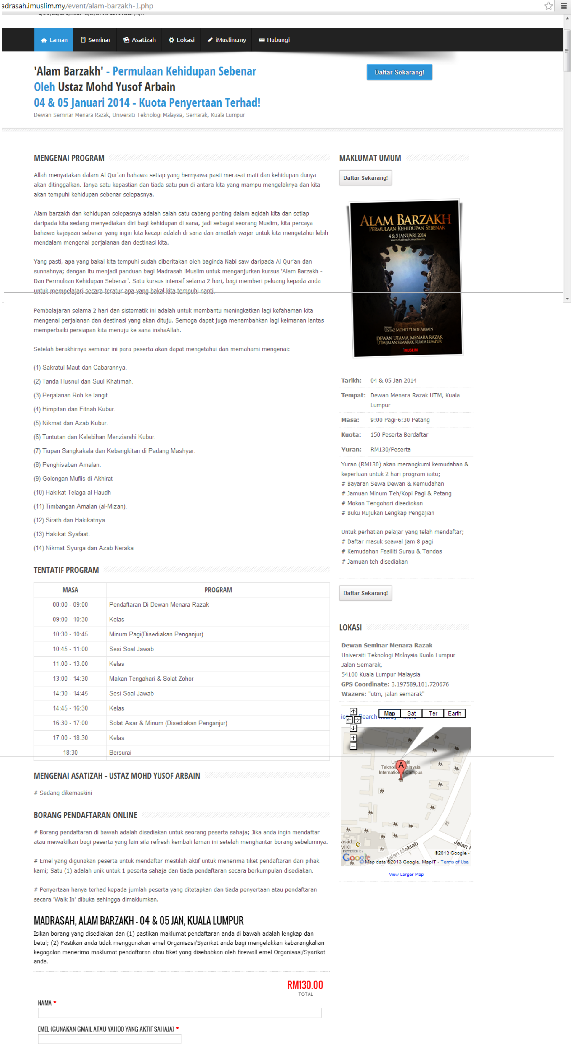 iMuslim is organising a lecture entitled ” ‘Alam Barzakh’ – Permulaan Kehidupan Sebenar ” on the 4th and 5th January 2014 in Kuala Lumpur. Kindly refer below for details or click the image below/this link to go to the event/registration page. Please pass the word around. Thank you !