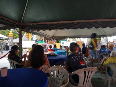 Nowadays I notice that participants don’t print their race confirmation slips anymore. Just flash out the phone screen and Walla, you’re good to go with your kit. Signed the waiver clause form, paid RM50 for timing chip deposit, and then collected my pack. The race kit was pretty basic but has all the essentials. Race number temporary tattoos, bike sticker, timing chip (uncle Chan, the co-organiser owns the timing system– as I understood it), the race tee,…and a cute Visit Melaka 2019 pin badge.. just about the smallest badge I’ve ever seen. Everything packed into a black string bag. And I was done.