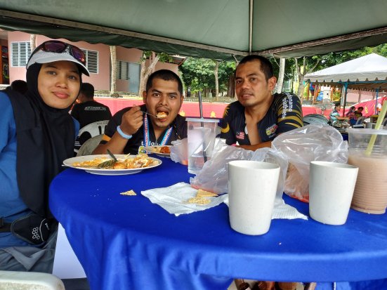 Met Leng and his colleague (restocked some race stash from him), caught up with Barry, who’s now officially retired from racing at 27, and then while waiting for the race briefing to commence Chan came and said Hello. And then Amirul and Aiman. All my adik2 and partners-in-developing- multisports during our years as students. And there were we, reunited once more. Kak Suzie @ Ahmad Syazwan wasn’t around but we were hoping a more complete reunion the next day 😁😁